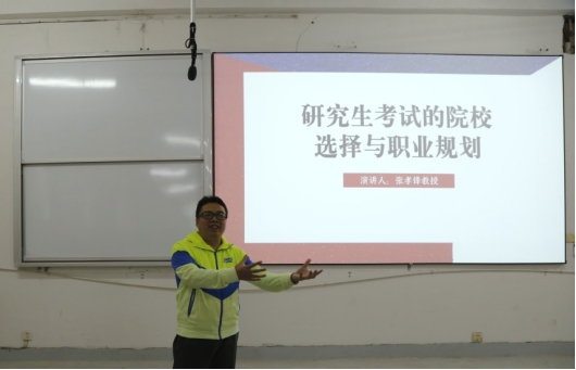 讲座上,张孝锋教授围绕“研究生考试的专业与院校选择、研究生分数线的划定、复试需要如何准备、职业规划”四个方面做出讲解。他向同学们介绍了考研院校的选择方法和建议,并提出不同院校专业的命题和招生特点亦不同,强调了选择院校专业的重要性,同时还分析了学硕和专硕的不同点,建议同学根据自己的学习情况、能力基础、职业目标、等多方面进行综合考虑,再去选择方向。
