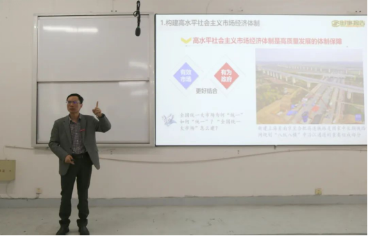 在“形势与政策”课程中,刘德华表示,思政课是立德树人的关键课程,在培养社会主义建设者和接班人中具有不可替代的重要作用,他以“开创高质量发展新局面”为主题,告诉员工们高水平社会市场经济体制是高质量发展的体制保障。