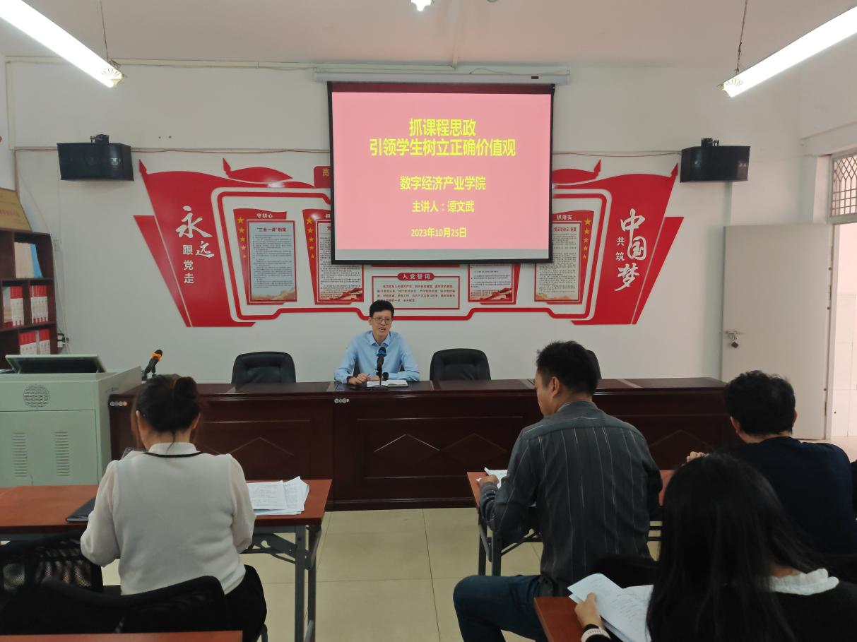 谭文武首先阐述了在当前时代背景下,教育的一项重要任务是将思政元素融入专业课程。他向全体教师介绍了思政课的概念和内涵,以帮助员工树立正确的人生观和价值观,并培养出具有高道德素养和专业素养的人才。