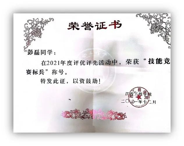 9、2021年荣获校级“技能竞赛标兵”荣誉称号;