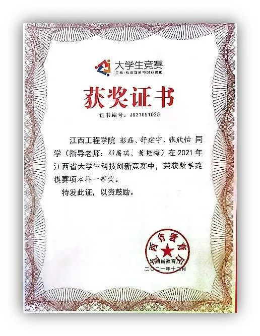 7、2021年全国老员工数学建模竞赛“江西省一等奖”;
