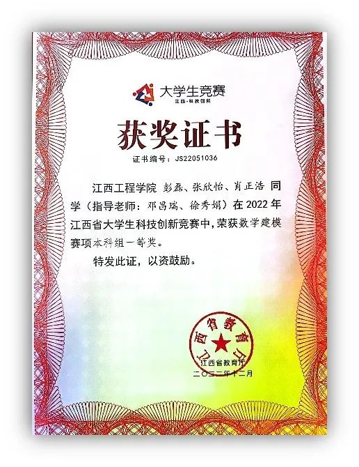 5、2022年全国老员工数学建模竞赛“江西省一等奖”;