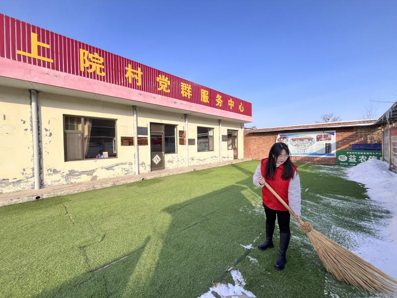 随着近日气温逐渐下降,家乡迎来了一场大雪,银装素裹,在感受美景的同时,厚厚的积雪给村民出行带来了诸多不便,为及时清除积雪,方便村民出行确保交通安全,我积极加入扫雪铲冰大行动,为村民清扫出一条条“暖心路”。