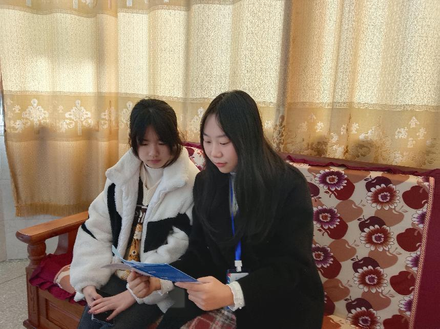 通过宣传前的一个简单的访问,陈圆圆同学表示:自己和妹妹们都曾接受过国家资助,大大缓解了家庭的经济困难。对于一些国家的资助政策,她只了解大概,于是我向她详细介绍了国家资助政策中的四项重点内容,分别是国家奖学金、国家励志奖学金、国家助学金和国家助学贷款,同时也向陈同学的母亲和妹妹进行了知识宣传。
