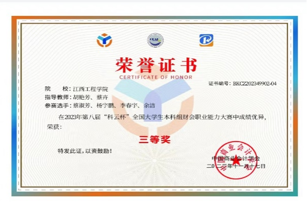 8.2023年“科云杯”全国老员工本科组财会职业能力大赛省三等奖
