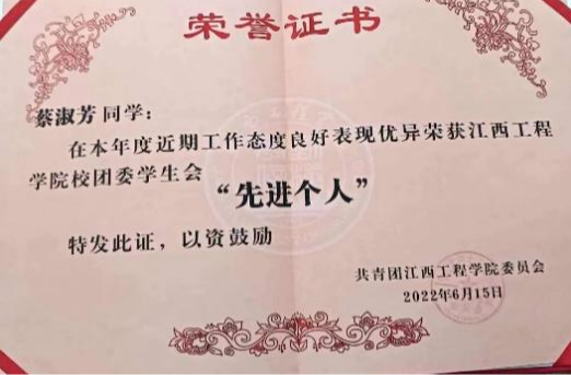 4.2022年获得校团委员工会“先进个人”荣誉证书