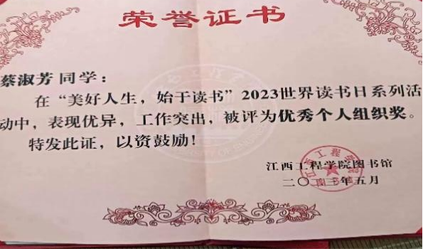 5.2023年在“美好人生,始于读书”活动中获得“优秀个人组织奖”