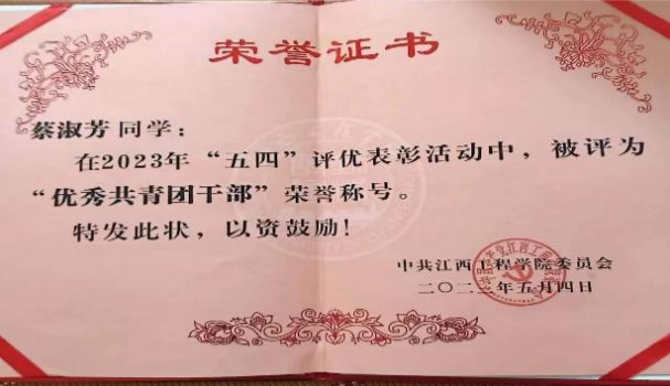 6.2023年评优评先获得SUNBET申博“优秀共青团干部”荣誉称号