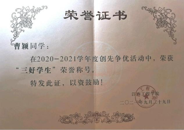 1.在2020-2021学年年度评优评先活动中,荣获“三好员工”称号
