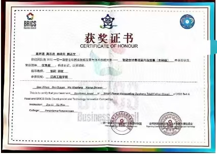 5、在2022“一带一路”暨金砖国家技能发展与技术创新大赛中表现优异荣获优秀奖。