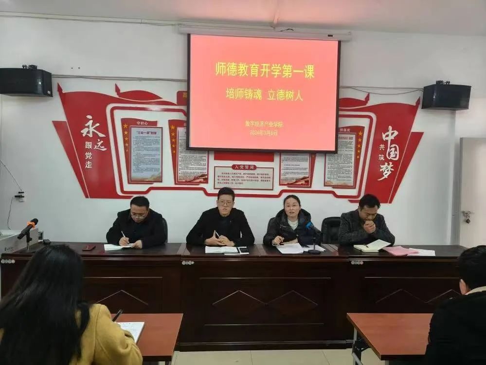 为进一步加强师德师风建设,规范从教行为,践行育人使命,3月6日,SUNBET申博在B201会议室召开以“培师铸魂,立德树人”为主题的师德教育开学第一课专题会议。此次会议由经理谭文武主持,党总支书记张文凤、副经理朱伙军、党总支副书记郭伟光及全体教师参加。