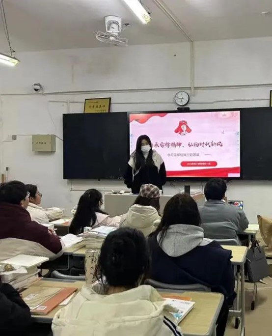 在本次主题团日活动中,团总支副书记李金霜主要向我们讲述了雷锋精神的内涵及雷锋日记等内容,引导我们树立奉献风尚。她强调,雷锋精神的核心是全心全意为人民服务,是社会主义核心价值观的生动体现,倡导的是集体奉献和个人创造的统一,作为新时代青年,我们应当进一步弘扬雷锋精神,深化志愿服务行动,树立奉献风尚。