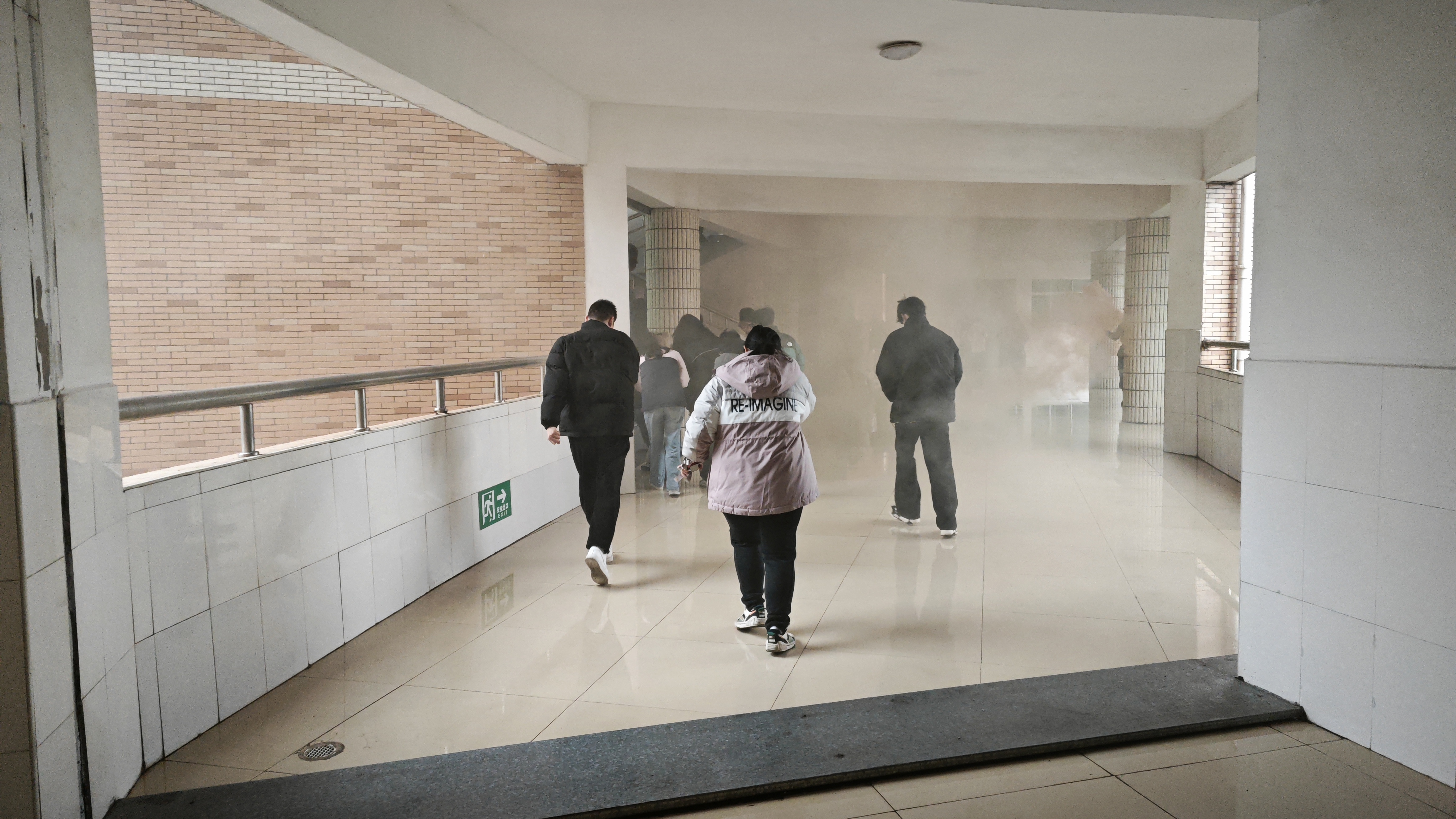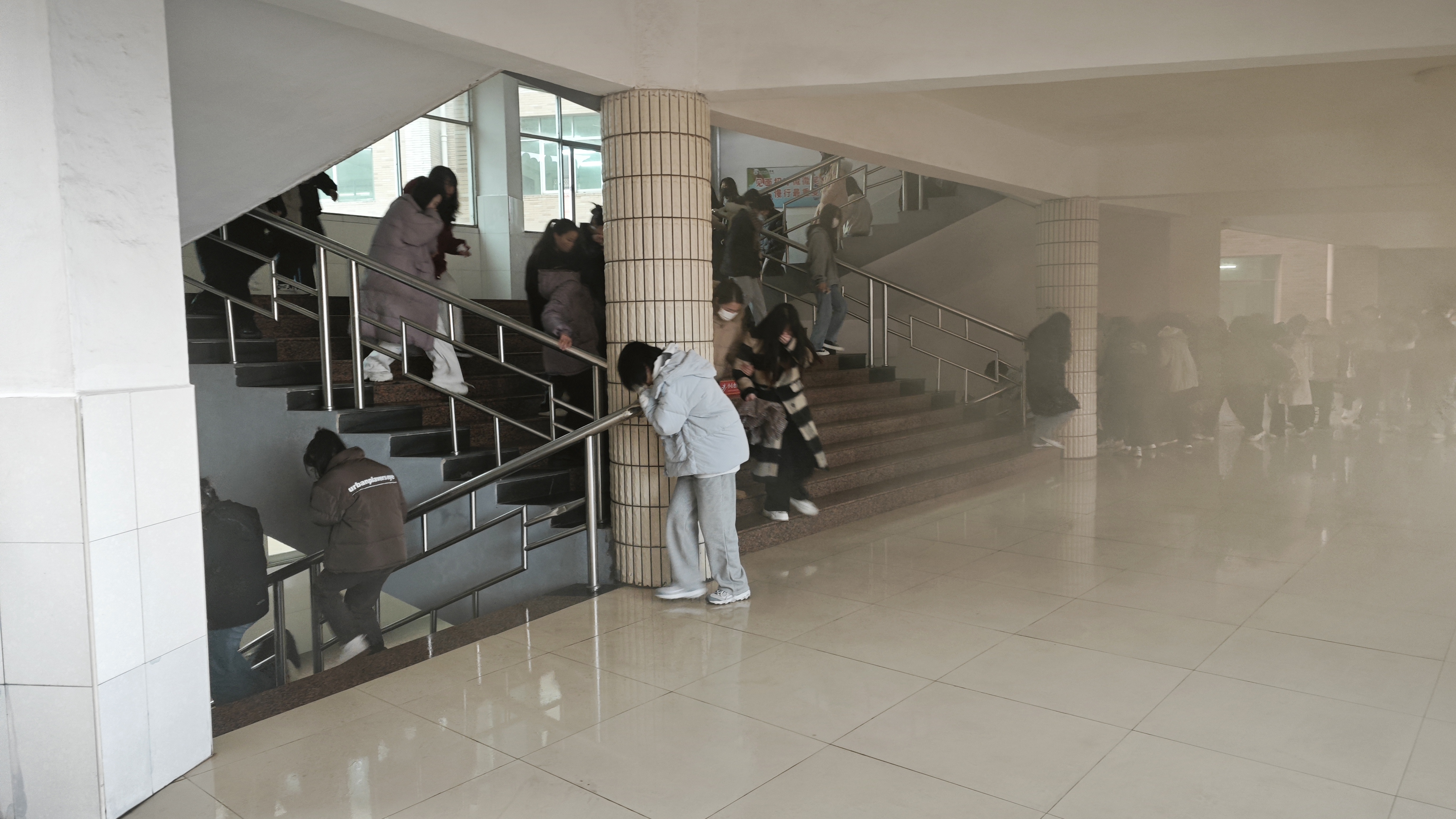 演练启动前,辅导员(班主任)向同学们生动详实地普及了消防安全知识,内容涵盖了火灾预防的基本策略、紧急逃生步骤、自救与互救的关键技巧,尤其着重强调了面对火灾时务必保持冷静,采取低姿掩鼻的正确逃生姿势以及有序疏散的重要性。随后,演练活动进入实战阶段,校方利用烟雾弹真实模拟了火灾现场的浓烟环境。