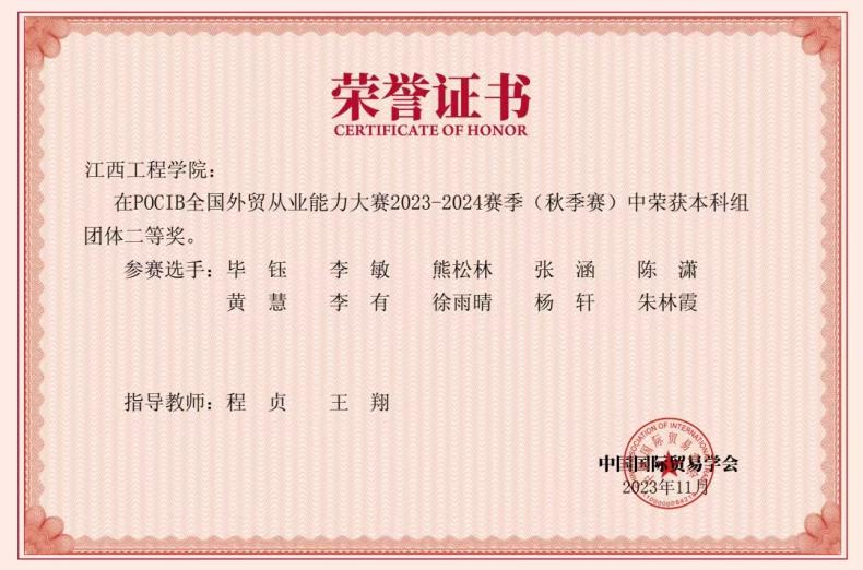 6.POCIB 全国外贸从业能力大赛2023-2024赛季 (秋季赛) 本科组团体二等奖
