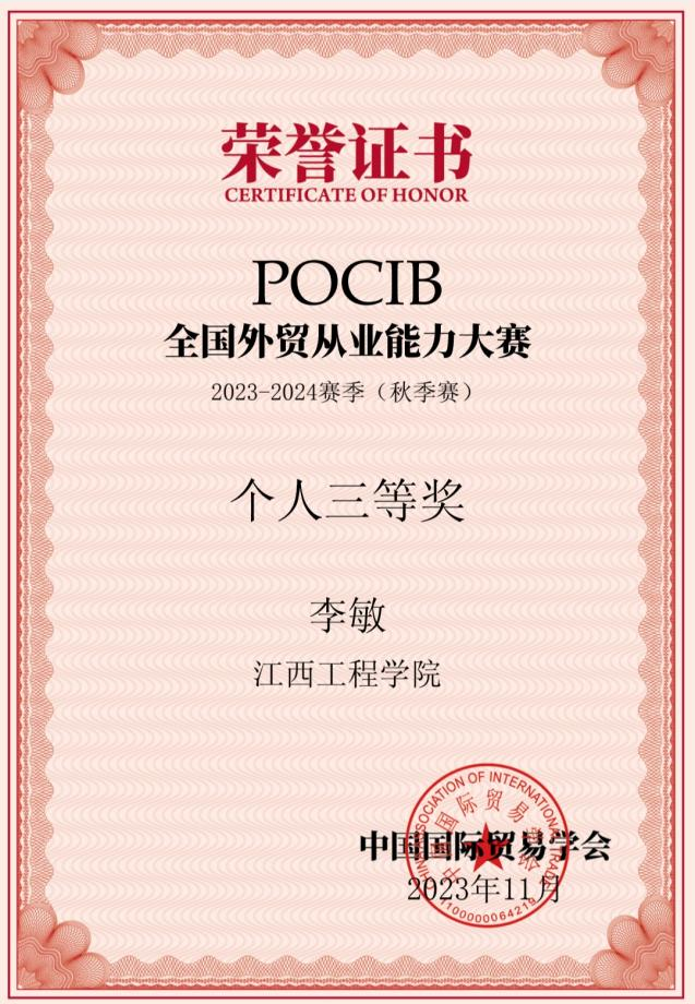 7.POCIB 全国外贸从业能力大赛 2023-2024赛季(秋季赛)国家级个人三等奖