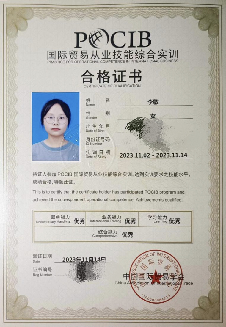 1.2023年国际贸易从业技能综合实训合格证书