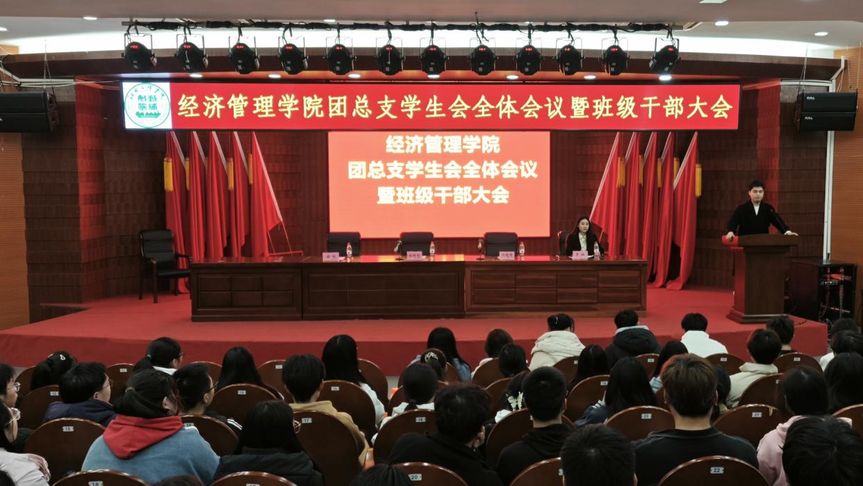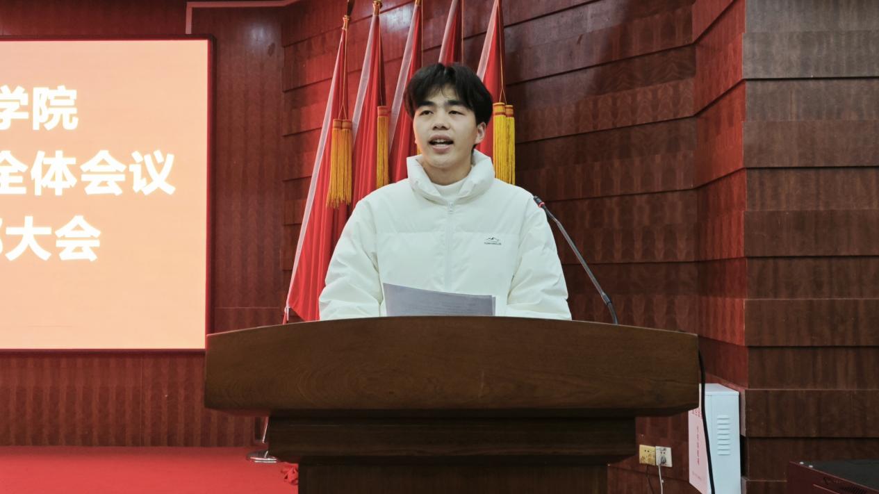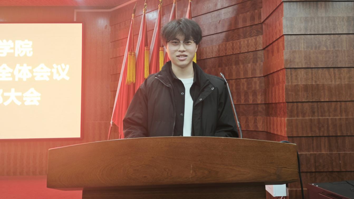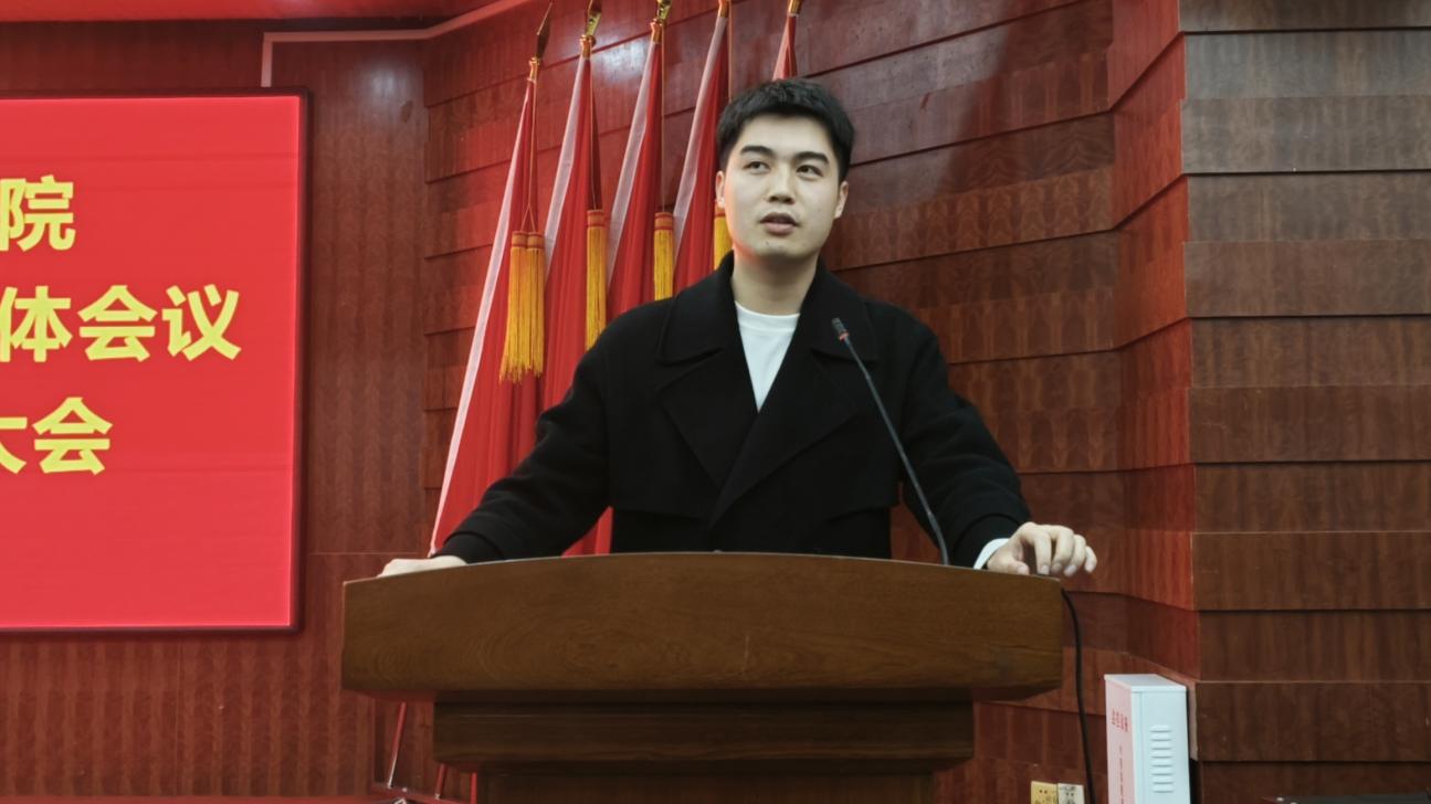 会议伊始,谢纹以饱满的热情回顾了团总支员工会的工作历程。他不仅高度肯定了员工会取得的辉煌成果,还指出了不足之处,激励员工干部们深入思考如何更好地履行职责、服务同学,以及提升自身的综合素质。他的讲话为在场的每一位同学指明了方向,激发了大家追求卓越、服务集体的热情。