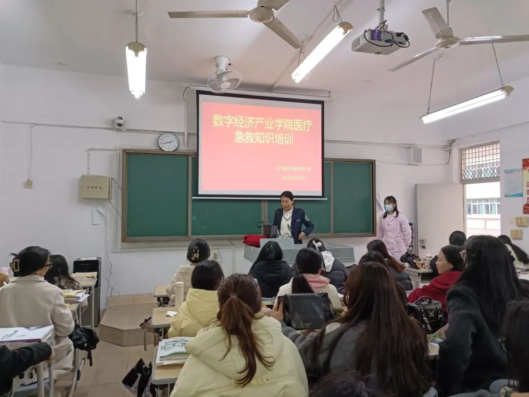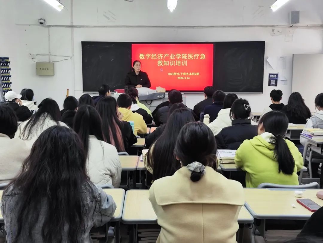 为做好急救科普工作,增强公司师生安全防范意识,提高应急救护技能。3月14日,公司邀请新余市紧急救援中心的宋小丽、潘帅平老师为2021级电子商务本科1班、2021级电子商务本科2班的员工讲解医疗急救知识。