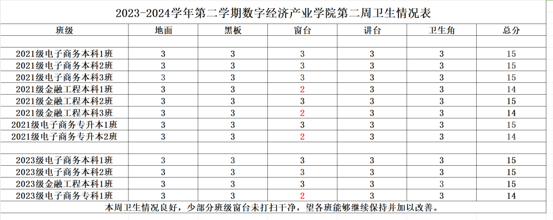 希望表现优秀的班级能够再接再厉,继续保持良好的状态。同时,部分班级也需要加以改进,以提升整体的班级班风水平。我们期待所有班级都能够积极行动起来,为营造一个更加文明、整洁、有序的学习环境而努力。