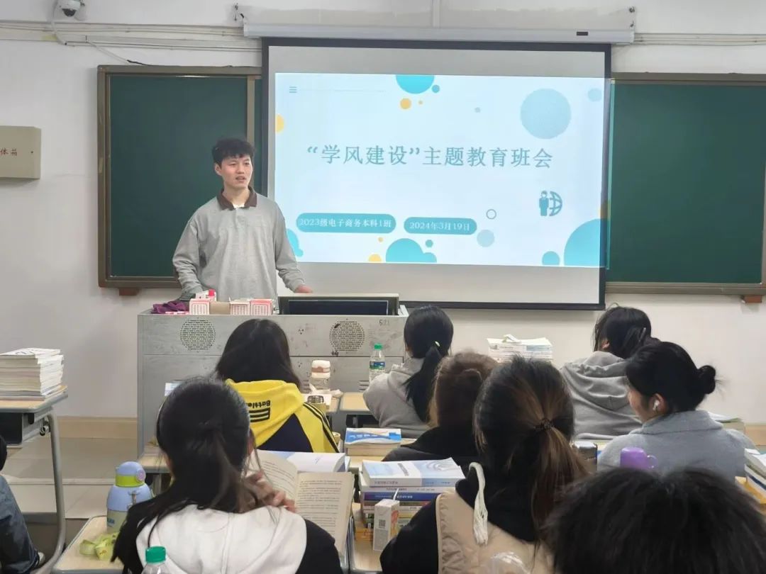 班会上,各班辅导员(班主任)带领班级同学了解学风建设的重要性和意义,培养良好的学习习惯,从制度建设、活动推进、情感关怀和榜样树立出发,引导班级同学在新学期积极调动学习内动力,化“被动学习”为“主动学习”,养成“我要学”的良好的学习习惯。同时,各班辅导员(班主任)期望同学们能以更加饱满的热情和更加严谨的态度,积极投身于学风建设中,努力营造浓厚的学习氛围,不断提高自身的学习能力和综合素质。