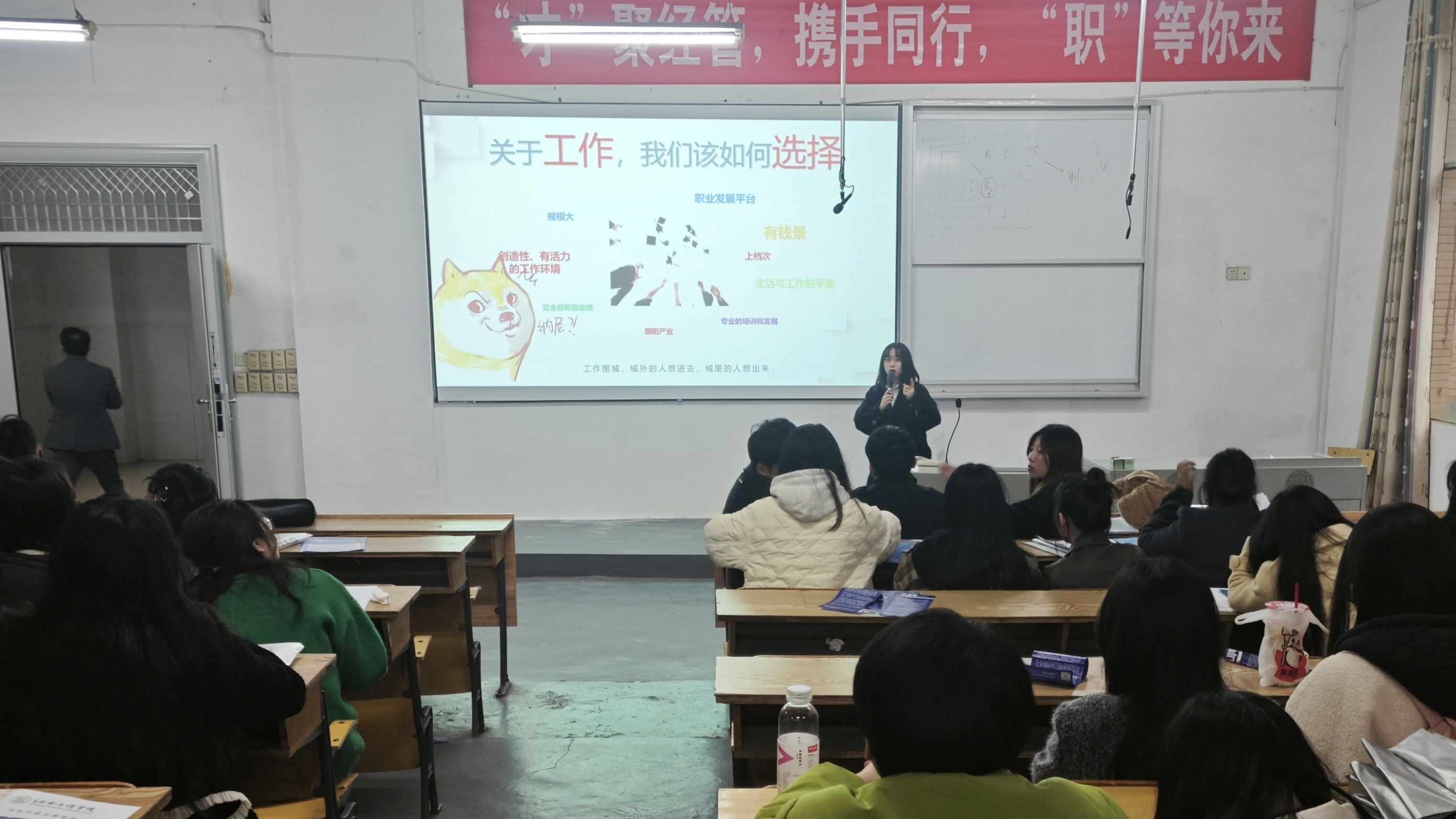 在招聘会上,中国大地财产保险股份有限公司的工作人员介绍了本次的招聘岗位主要为客户经理6名,并详细介绍了公司的企业文化、业务范围、发展前景以及福利待遇等。随后,工作人员耐心解答同学们的疑问,通过与同学们进行深入的交流和互动,使在场的同学们对这家公司有了更加全面和深入的了解。