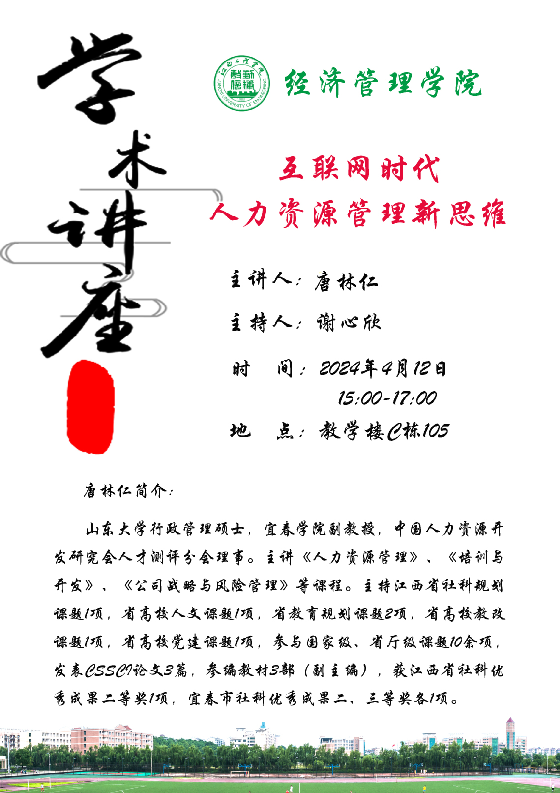 【学术通知】宜春公司唐林仁副教授:互联网时代人力资源管理新思维