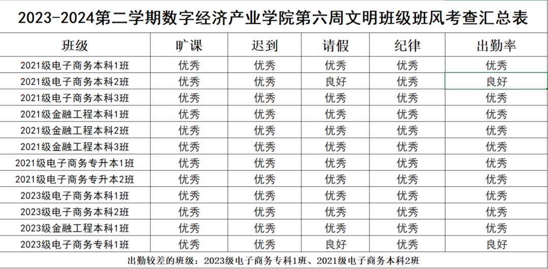 希望表现优秀的班级能够再接再厉,继续保持良好的状态。同时,部分班级也需要加以改进,以提升整体的班级班风水平。我们期待所有班级都能够积极行动起来,为营造一个更加文明、整洁、有序的学习环境而努力。