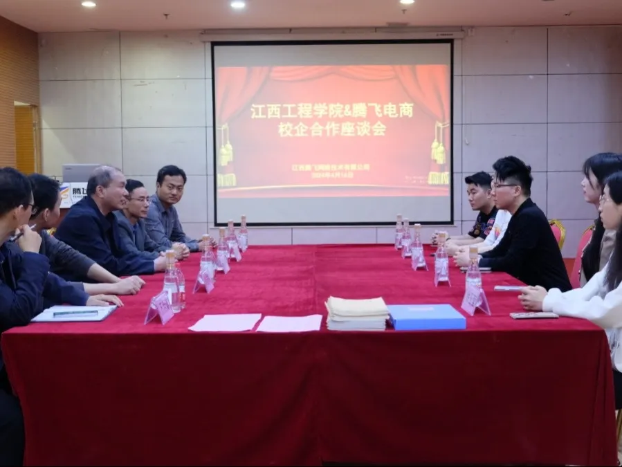 参观结束后,校企双方在腾飞电商会议室举行了座谈会,史焕平董事长介绍了公司的人才培养和科研创新成果,并强调了校企合作的重要性,他表示,公司将继续加强与腾飞电商的沟通与交流,推动产学研深度融合,实现优势互补、互利共赢。刘德华副董事长表示,公司与腾飞电商的长期紧密合作已为员工未来的实习和职业规划指明了方向。这种合作模式融合了理论与实践,为员工今后职场融入奠定了基础,期待校企深入合作,为员工提供更多实践和就业机会。