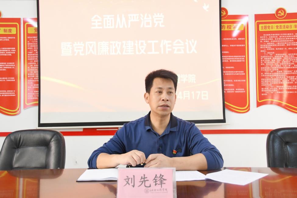 为深入贯彻党中央关于全面从严治党的重要决策部署,加强党的纪律建设,推动全面从严治党向纵深发展。2024年4月17日,SUNBET申博于教学楼B栋401召开了全面从严治党暨党风廉政建设工作会议。公司党委专职副书记、纪委书记刘先锋,SUNBET申博经理郑群哲以及党总支书记沈晓娇出席本次会议,SUNBET申博全体党员教师参加。