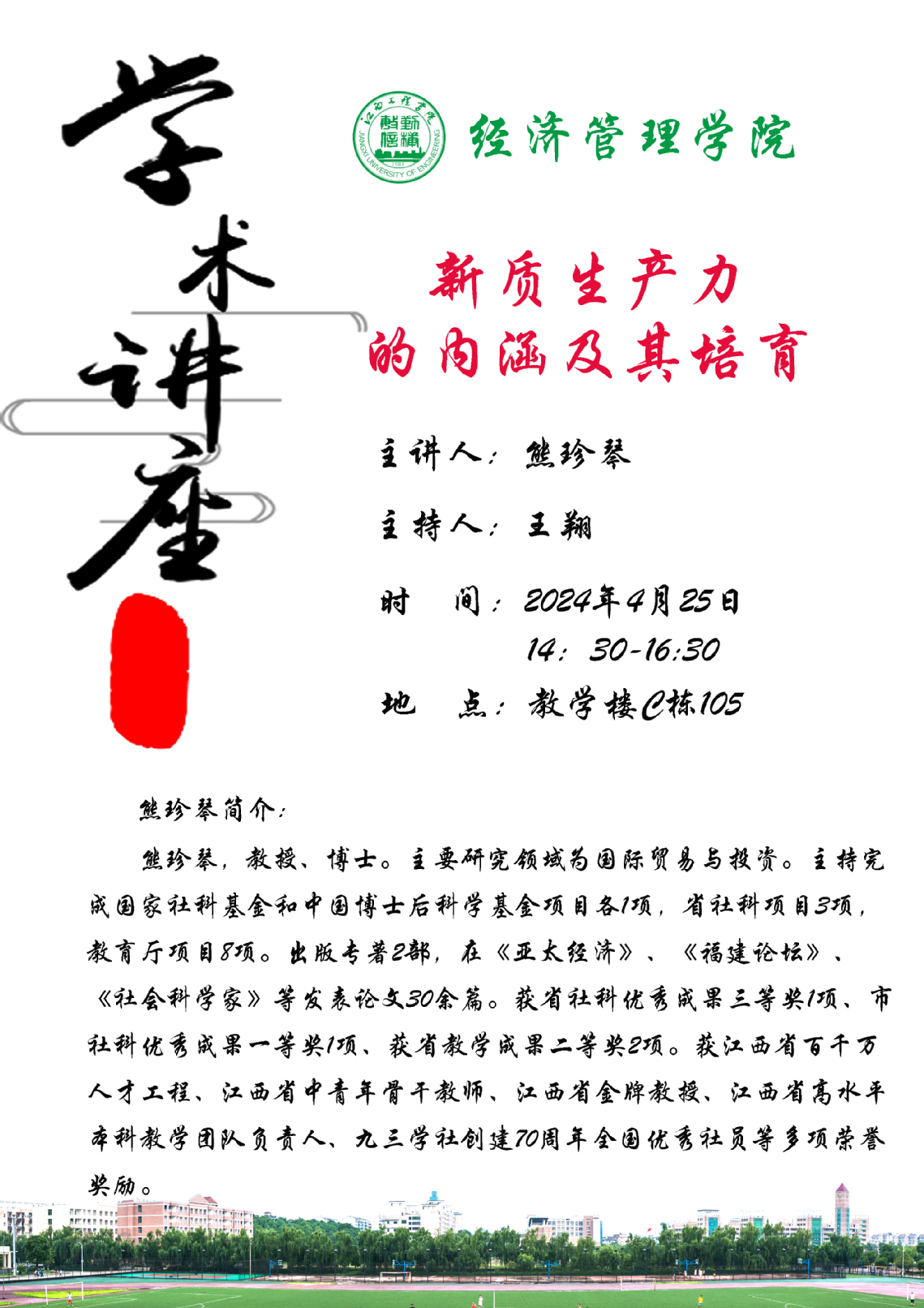 【学术通知】SUNBET申博熊珍琴教授:新质生产力的内涵及其培育