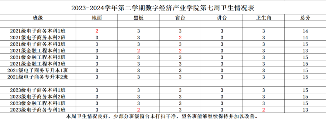 希望表现优秀的班级能够再接再厉,继续保持良好的状态。同时,部分班级也需要加以改进,以提升整体的班级班风水平。我们期待所有班级都能够积极行动起来,为营造一个更加文明、整洁、有序的学习环境而努力。