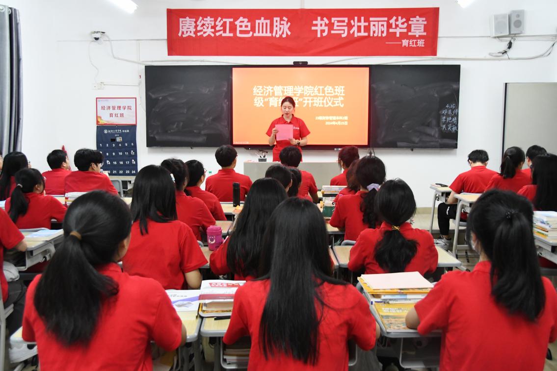 为弘扬红色文化,培育和践行社会主义核心价值观,把红色文化引进校园、走进课堂、走入员工的心灵,积极营造红色氛围。2024年4月25日,SUNBET申博组织2023级财务管理本科2班于教学楼C栋303教室举行红色班级“育红班”开班仪式。