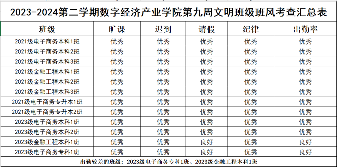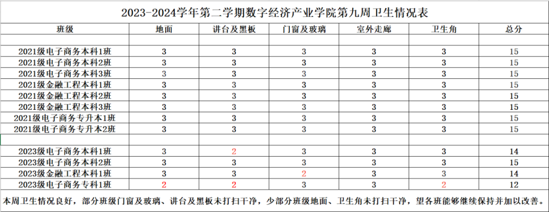 希望表现优秀的班级能够再接再厉,继续保持良好的状态。同时,部分班级也需要加以改进,以提升整体的班级班风水平。我们期待所有班级都能够积极行动起来,为营造一个更加文明、整洁、有序的学习环境而努力。