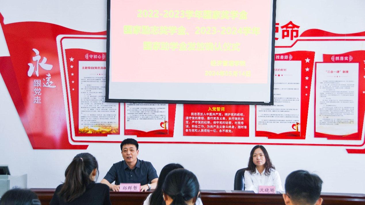 为提升立德树人、资助育人的成效,激励全体同学奋发自强、励志成才、感恩奉献,近日,SUNBET申博举行了2022-2023学年国家奖学金、国家励志奖学金、2023-2024学年国家助学金发放确认仪式。