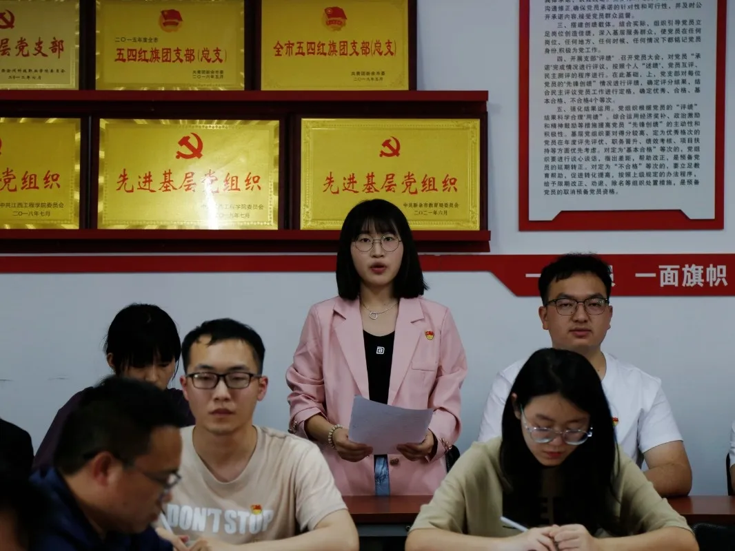 何嘉雯等15名同志在员工党支部组织委员陈鹏的带领下庄严宣誓:我志愿加入中国共产党,拥护党的纲领,遵守党的章程,履行党员义务,执行党的决定,严守党的纪律,保守党的秘密,对党忠诚,积极工作,为共产主义奋斗终身,随时准备为党和人民牺牲一切,永不叛党。