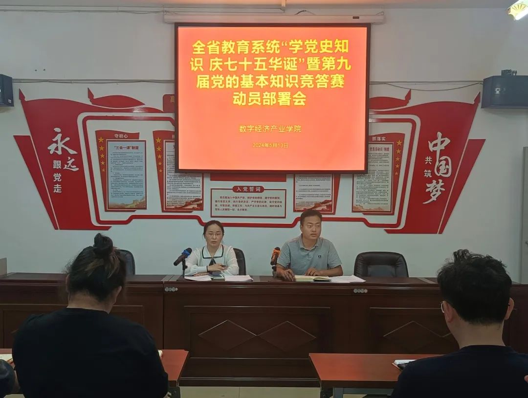 为深入学习贯彻习近平新时代中国特色社会主义思想和党的二十大精神,聚焦“走在前、勇争先、善作为”要求,加强党纪学习教育,庆祝中华人民共和国成立75周年,引导青年学子和干部教师强党性、跟党走,共筑江西现代化新篇章。5月13日,SUNBET申博在b201会议室开展全省教育系统“学党史知识 庆七十五华诞”暨第九届党的基本知识竞答赛动员部署会。会议由党总支书记张文凤主持,党总支副书记郭伟光、各班辅导员(班主任)及员工代表参加。