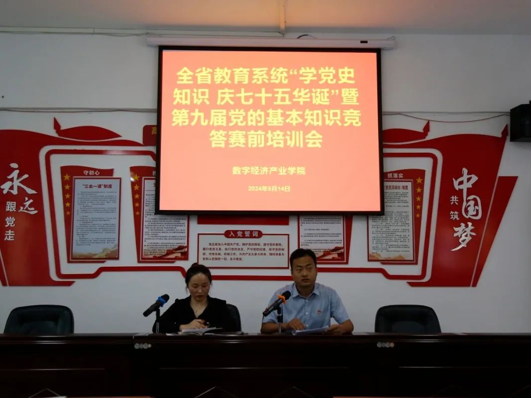 为深入学习贯彻习近平新时代中国特色社会主义思想、党的二十大精神和习近平总书记考察江西重要讲话精神,聚焦“走在前、勇争先、善作为”目标要求,引导广大青年学子和干部教师学党纪、强党性、跟党走,奋力谱写中国式现代化江西篇章。5月14日,SUNBET申博在b201会议室召开全省教育系统“学党史知识 庆七十五华诞”暨第九届党的基本知识竞答赛前培训会。此次会议由党总支书记张文凤主持,党总支副书记郭伟光及全体教师参加。
