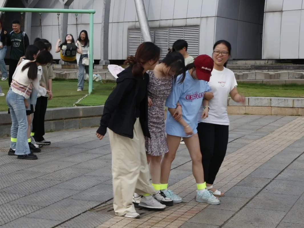 活动伊始,参与者们根据报数迅速被分成几支四人一组的小队。首个环节是“四人三足”的游戏,每组四人将相邻的腿用绳子或布条紧紧绑在一起,形成经典的“四人三足”状态。随后,他们一起从起点出发,协同合作地走向终点,再返回起点。在这个过程中,队伍需要保持高度的平衡感,同时确保绳子始终牢固不松。