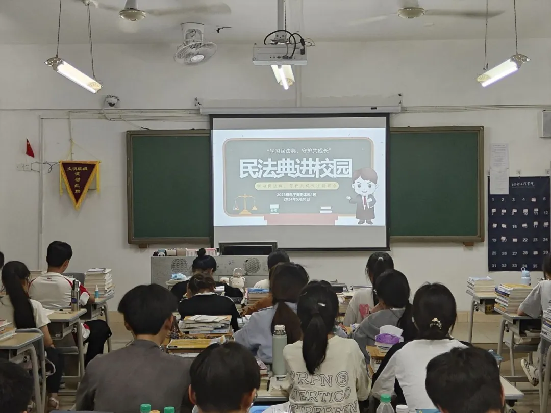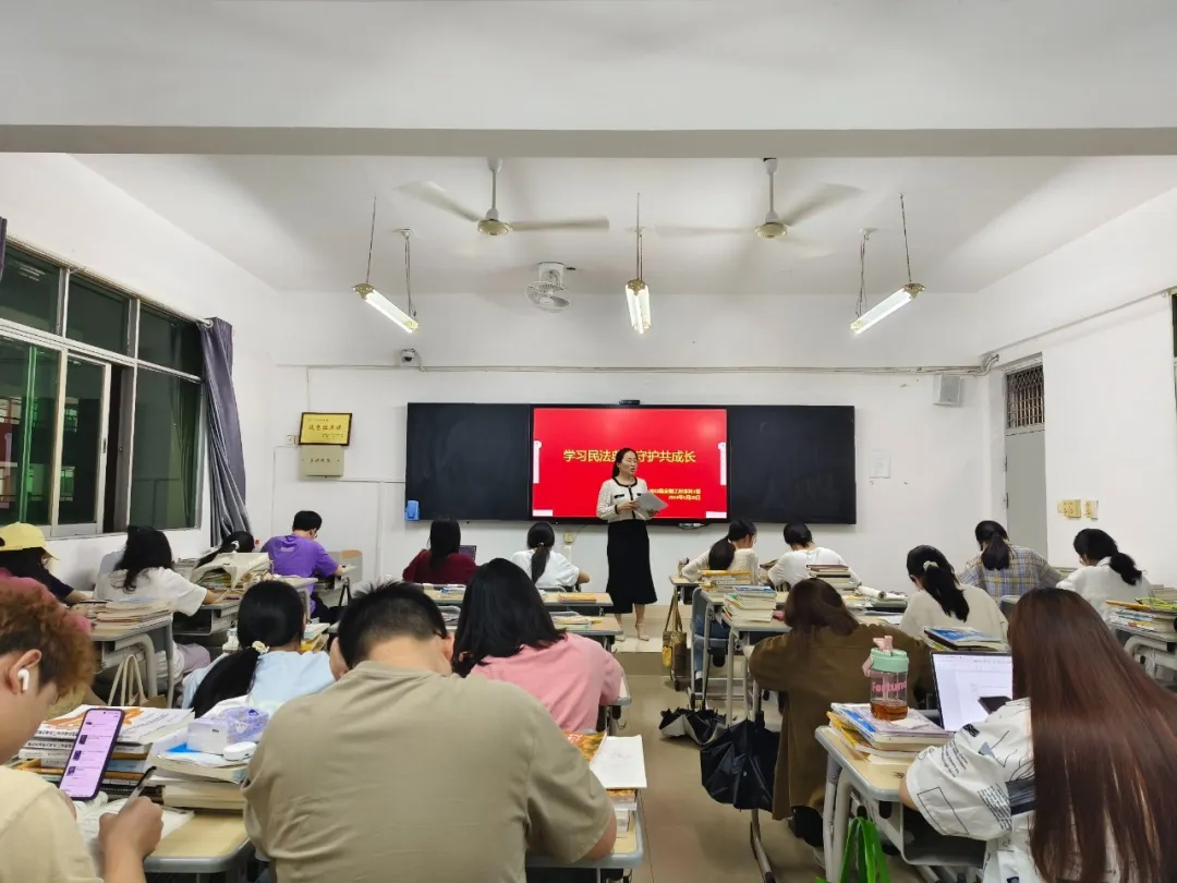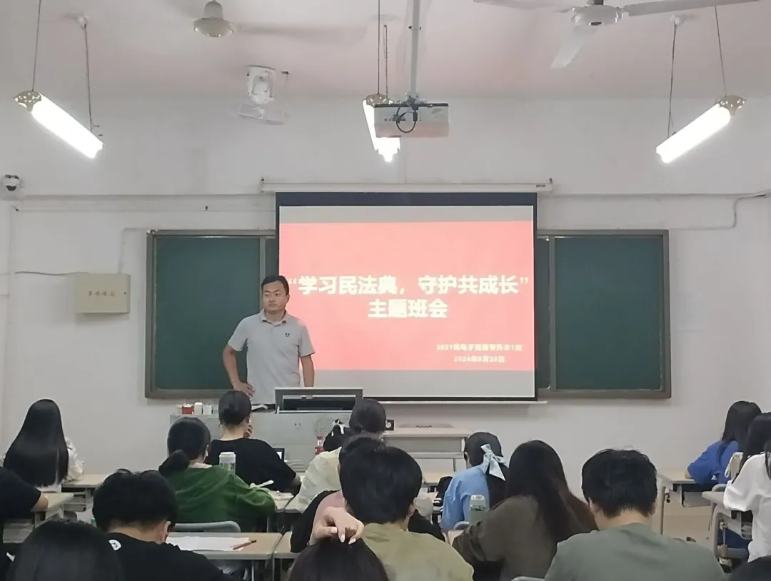 最后,辅导员(班主任)强调,民法典作为新中国成立以来第一部以法典命名的法律,具有里程碑式的意义。它关系到社会生活的方方面面,是每个公民都应当了解并掌握的重要法律知识。辅导员(班主任)要求同学们要学好、用好、宣传好民法典,尊重法律,敬畏规则,真正将法治精神内化于心,外化于行,努力破除各种阻碍,争做崇法尊法、拥法护法的忠诚践行者和坚定捍卫者。