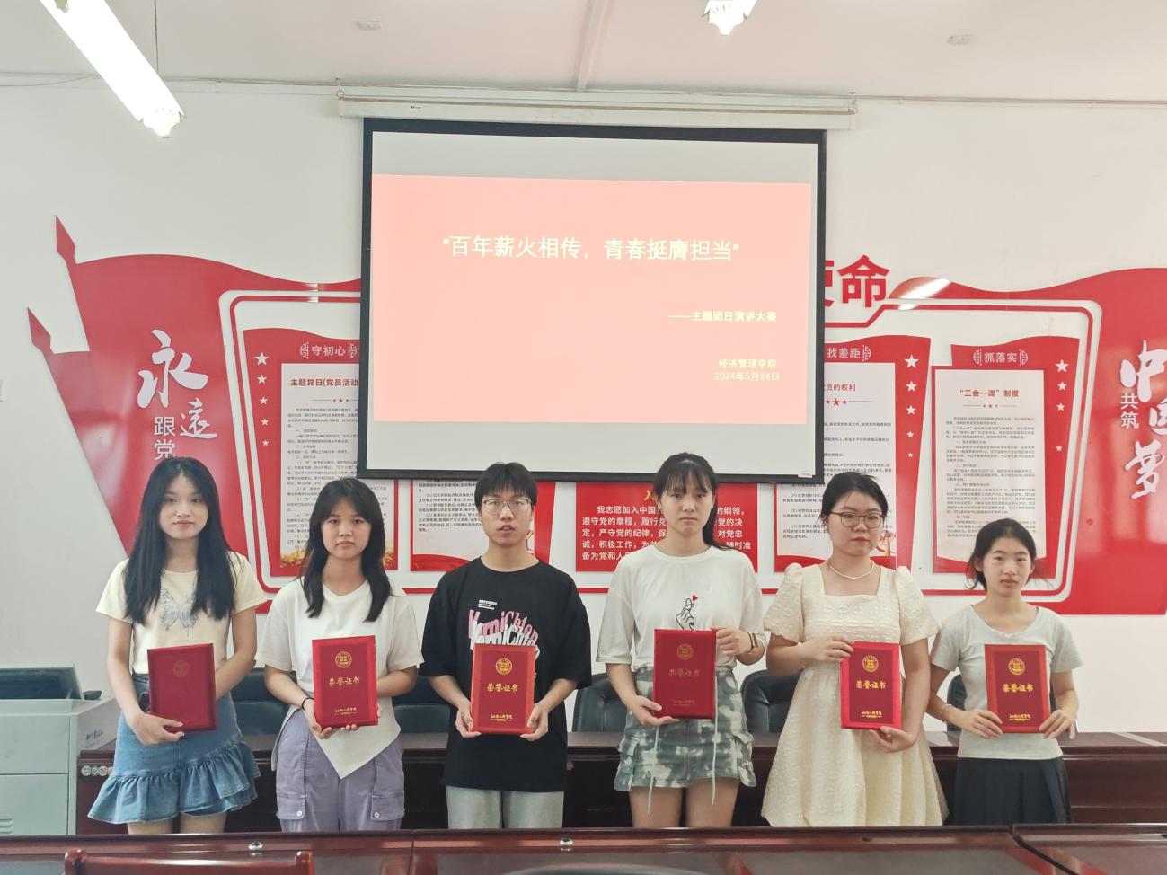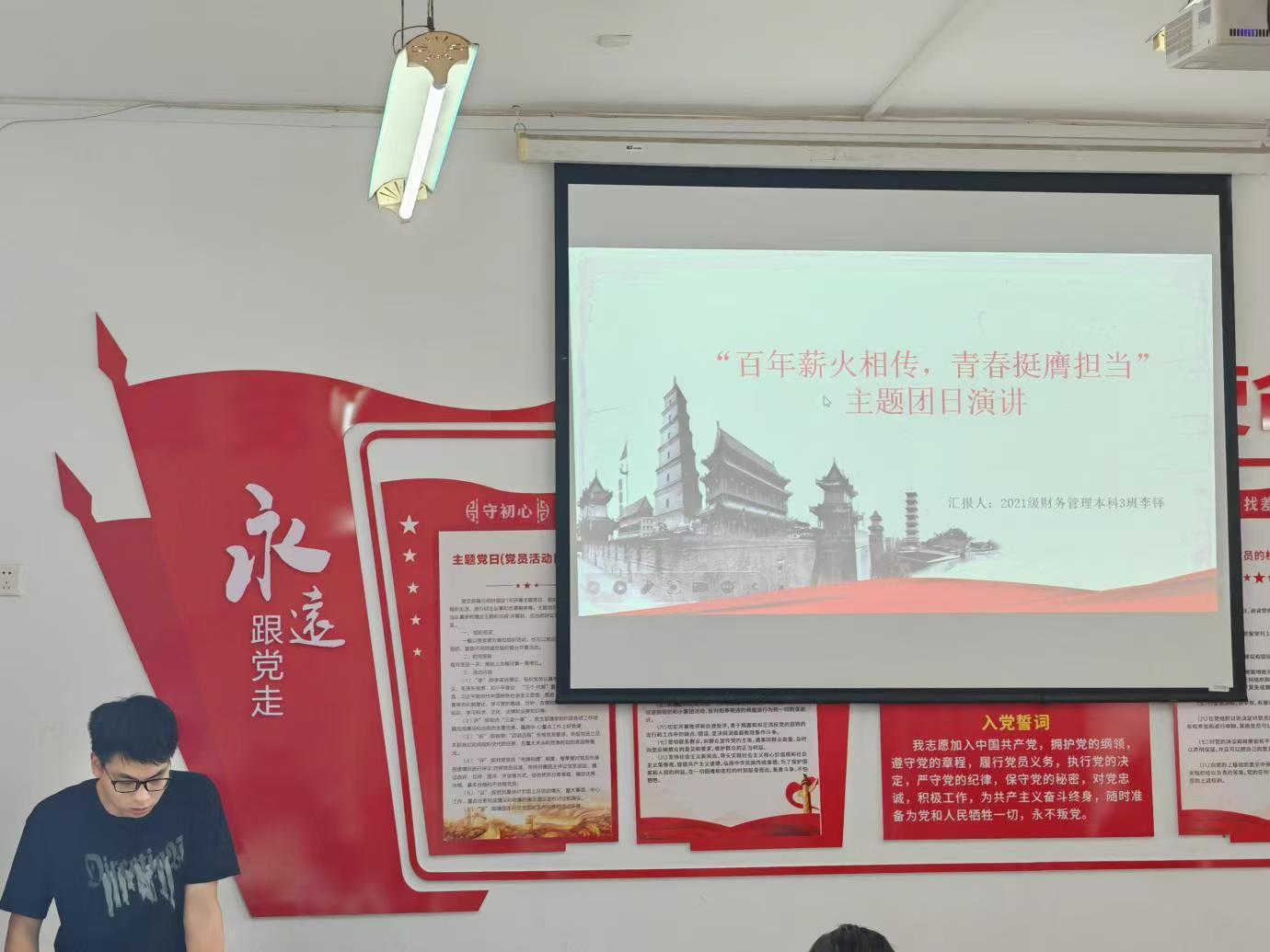 2024年5月24日,SUNBET申博在教学楼B栋401会议室开展了“百年薪火相传,青春挺膺担当”主题团日活动,此活动旨在通过演讲比赛的形式,激发团员青年的责任感、使命感和荣誉感,推动他们在新时代为实现中华民族伟大复兴的中国梦而努力奋斗。