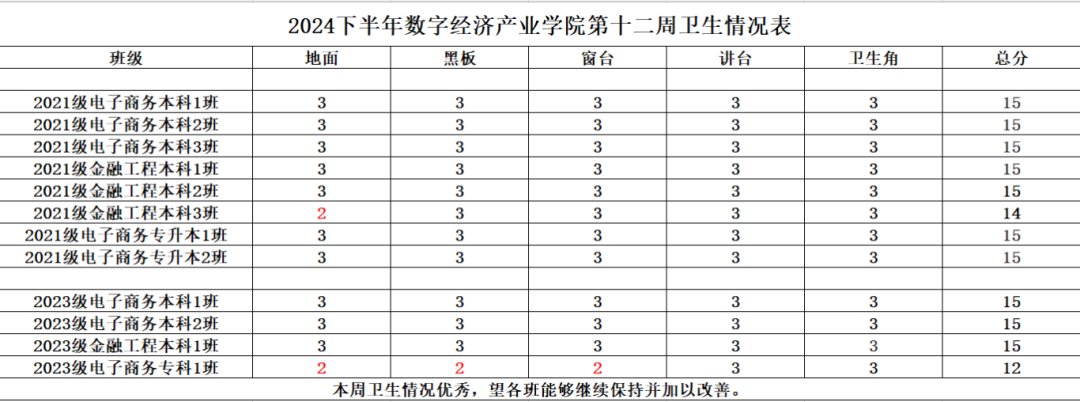 希望表现优秀的班级能够再接再厉,继续保持良好的状态。同时,部分班级也需要加以改进,以提升整体的班级班风水平。我们期待所有班级都能够积极行动起来,为营造一个更加文明、整洁、有序的学习环境而努力。