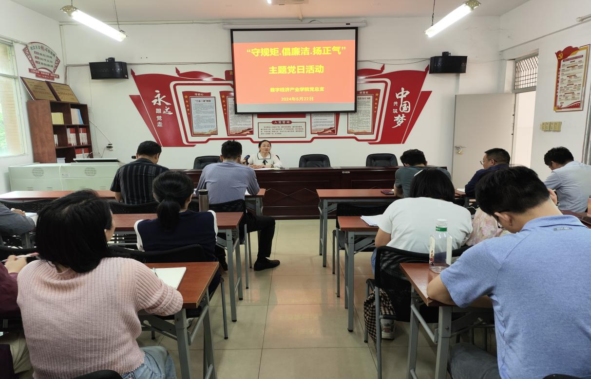 为深入学习贯彻习近平新时代中国特色社会主义思想和党的二十大精神,全面提升政治素养。2024年5月22日下午,数字经济产业公司党总支开展“守规矩,倡廉洁,扬正气”主题党日活动。此次党日活动由数字经济产业公司党总支书记张文凤主持,全体党员教师参加。