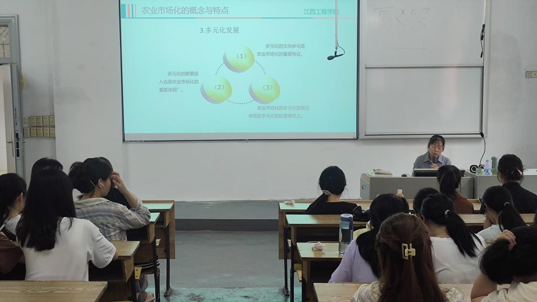 讲座伊始,廖老师首先向同学们介绍了农业市场化的基本概念和主要特点,强调了市场导向性在农业生产中的重要性。她详细解释了生产决策、资源配置、产品品质、销售渠道等方面如何受到市场需求的影响,并指出农民和农业企业在决策过程中需要充分考虑市场需求,从而做出符合市场需求的决策。
