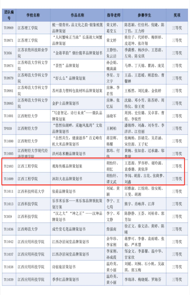 全国高校商业精英挑战赛品牌策划竞赛是公司重点参赛项目,从前期准备到省赛角逐,各团队先后经历了知识赛、线上打磨和省赛前线下打磨,为冲击省赛打下坚实基础,最终成功在决赛中斩获嘉奖。经过激烈的比拼,在公司胡怡轩,胡忆,谭文武等老师的指导下,两支队伍在比赛中荣获全国总决赛三等奖。