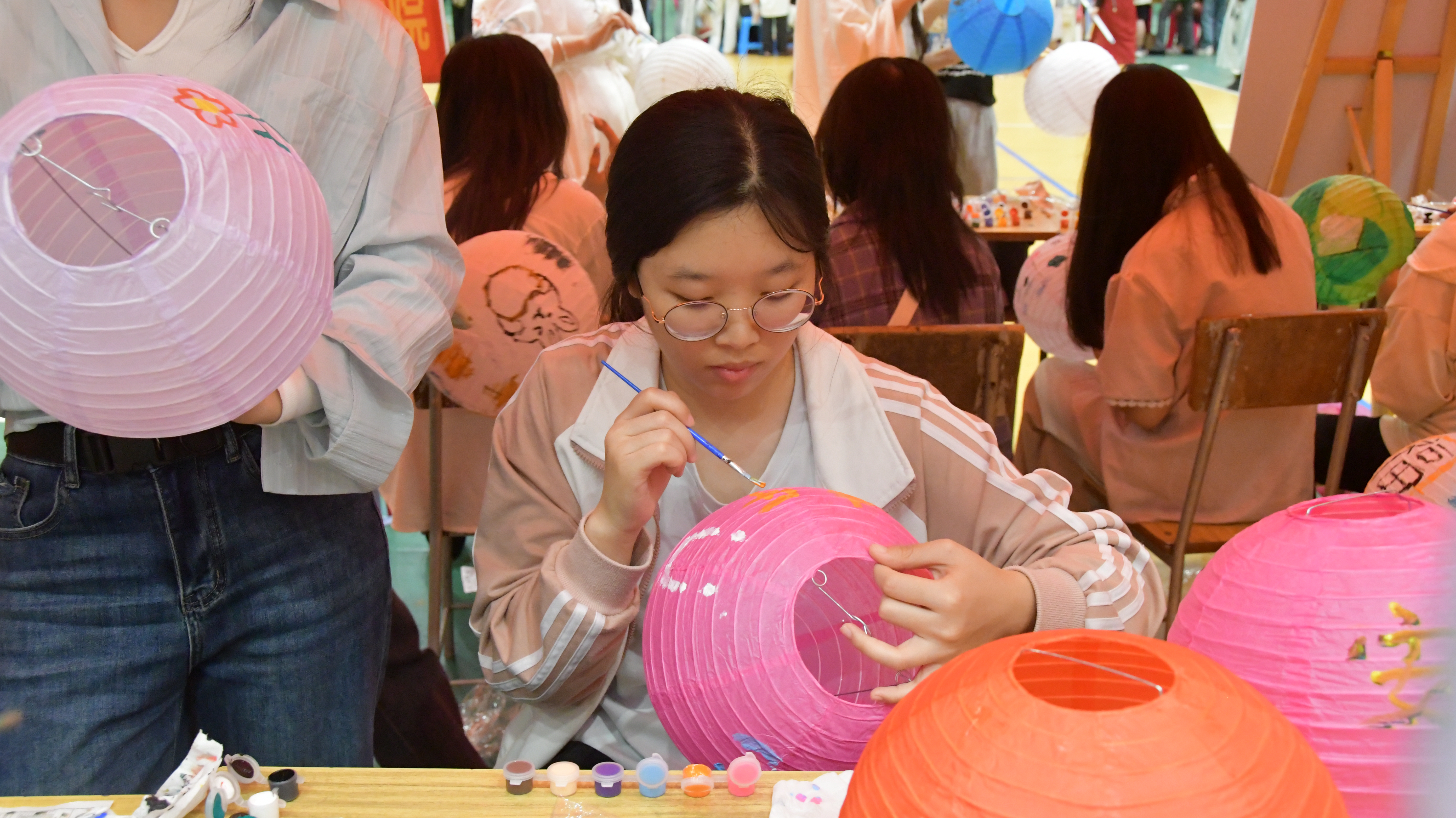 活动上,同学们围坐在摆放好的灯笼周围,手持画笔,沉浸在创作的喜悦中。有的同学细致描摹着传统图案,有的同学则发挥想象,创造出别具一格的现代设计。他们自豪地展示着自己的作品,相互分享创作背后的故事与寓意,加深了对中华传统文化的理解。