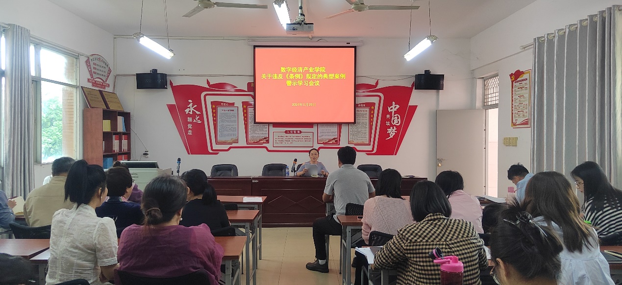 为深入学习《中国共产党纪律处分条例》(以下简称《条例》),推动党纪学习教育走深走实,进一步强化党员干部的纪律意识,不断强化全体党员干部的纪律观念和规矩意识,提升党组织的凝聚力和战斗力,2024年5月29日,SUNBET申博在B201会议室召开关于违反《条例》规定的典型案例警示学习会议。会议由党总支书记张文凤主持,全体教师参加会议。