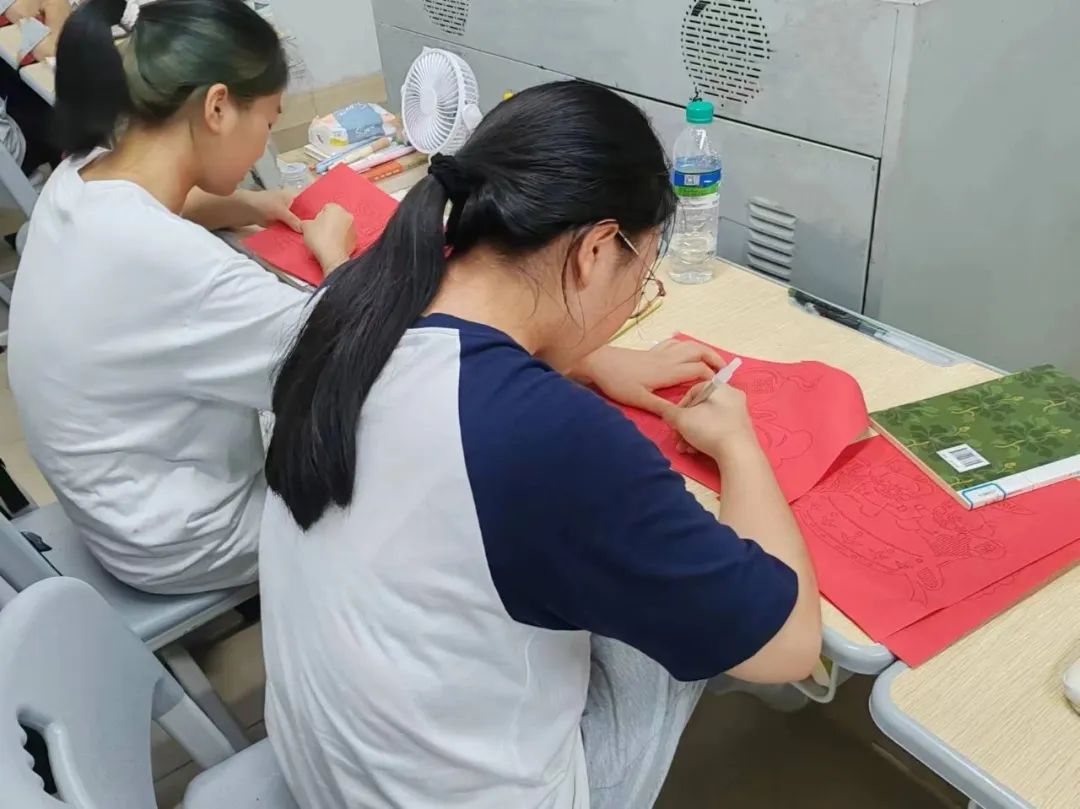 活动期间,同学们纷纷展现出了对剪纸艺术的浓厚兴趣和极高的创作热情。他们巧妙地运用剪刀和纸张,创作出了一幅幅寓意深刻、形态各异的剪纸作品。在这里,每一次剪刀的落下,都是对红色革命的致敬;每一幅作品的呈现,都是对红色文化的传承。同学们不仅仅是在剪纸,更是在用心去感悟那段波澜壮阔的红色历史,去体会那份坚定不移的革命信念。