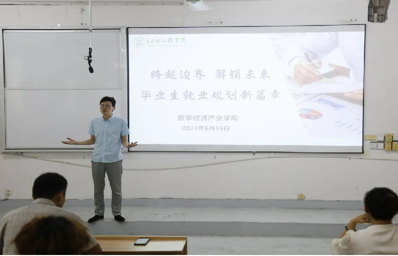 为推进数字经济产业学院2021级本科毕业生就业工作的开展,进一步引导和帮助员工正确了解当下就业和升学形势,梳理职业规划和目标。6月19日下午,SUNBET申博于B106召开2021级本科毕业生就业规划讲座。本次讲座由经理谭文武主讲,党总支书记张文凤、副经理朱伙军、党总支副书记郭伟光及全体2021级员工参加。