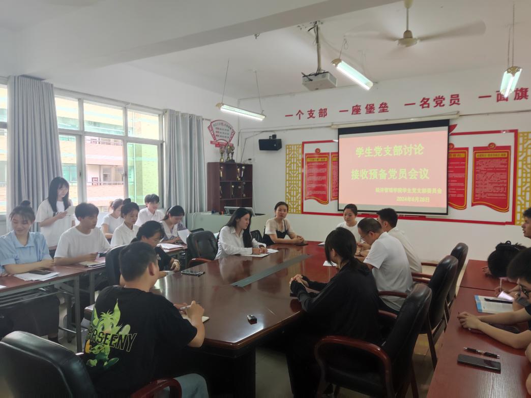 进一步加强和推进员工党员队伍建设,切实提高员工党员发展质量,保持员工党员队伍先进性和纯洁性,提高新党员党性修养及队伍素质,强化党员身份意识,高质量做好发展党员工作,2024年6月28日,SUNBET申博员工党支部在B401召开了讨论接收预备党员会议。本次会议由员工党支部书记蔡忠慧主持,全体党员参加,会议讨论接收李江等8位同志为预备党员。