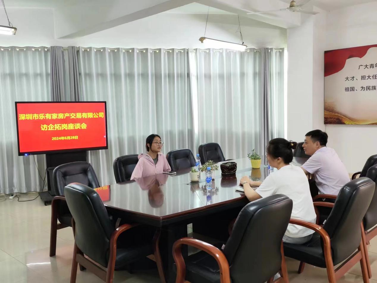 座谈会伊始,乐有家房产交易有限公司招聘人员详细介绍了公司的发展历程、运营模式、销售领域、合作交流等方面的情况,并提出了公司对专业人才需求及主要招聘岗位。其中,招聘财务助理3名、营销专员10名。随后,双方就校企合作事宜进行了深入洽谈,包括共同探索建立校企协同育人机制、加强校企合作深度、助力毕业生精准就业和企业高质量发展等方面。
